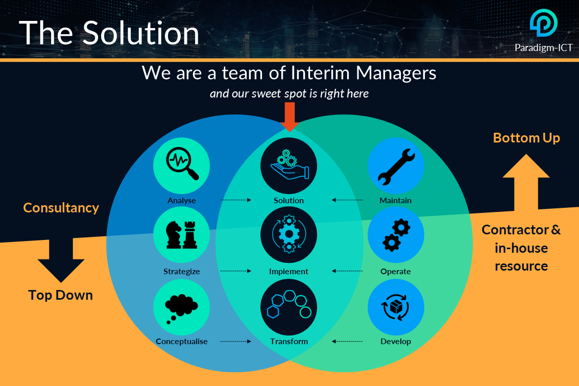 Welcome to Paradigm-ICT, your trusted partner in driving transformative change initiatives. As dedicated interim operational consultants, we bring a wealth of expertise to the table. Our team comprises seasoned professional associates, each boasting full independence and a diverse range of experience across various sectors. From Financial Services and Utilities to Retail, Manufacturing, Telecommunications, and even Logistics & Waste Management, our proficiency knows no bounds